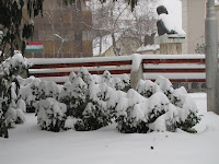 | 噴水も雪に覆われて姿を消してしまった |